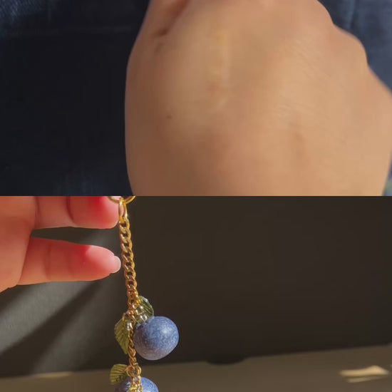 Sweet and irresistibly chic ✨ This handcrafted charm features lifelike blueberries made from high-quality resin and acrylic, paired with delicate green leaf and 18k gold plated stainless steel chain. It’s the perfect touch of playful luxury. Clip it to your favourite bag or keys for a fresh, elegant pop of color.