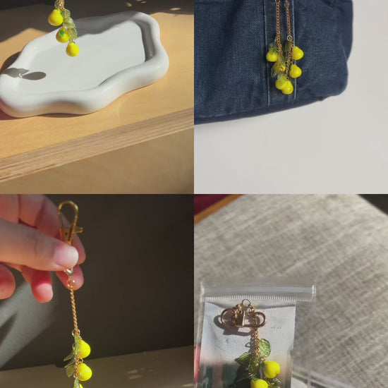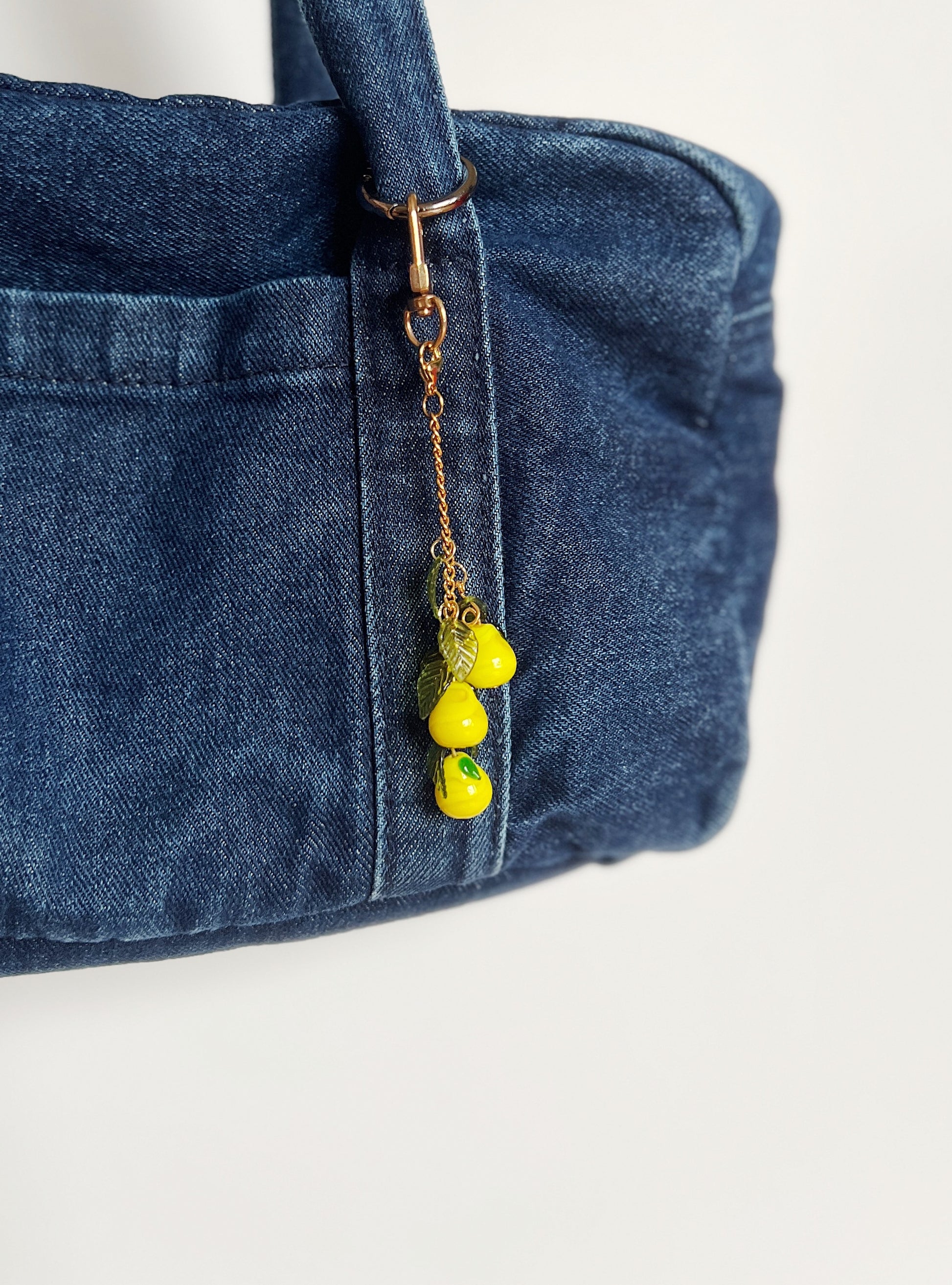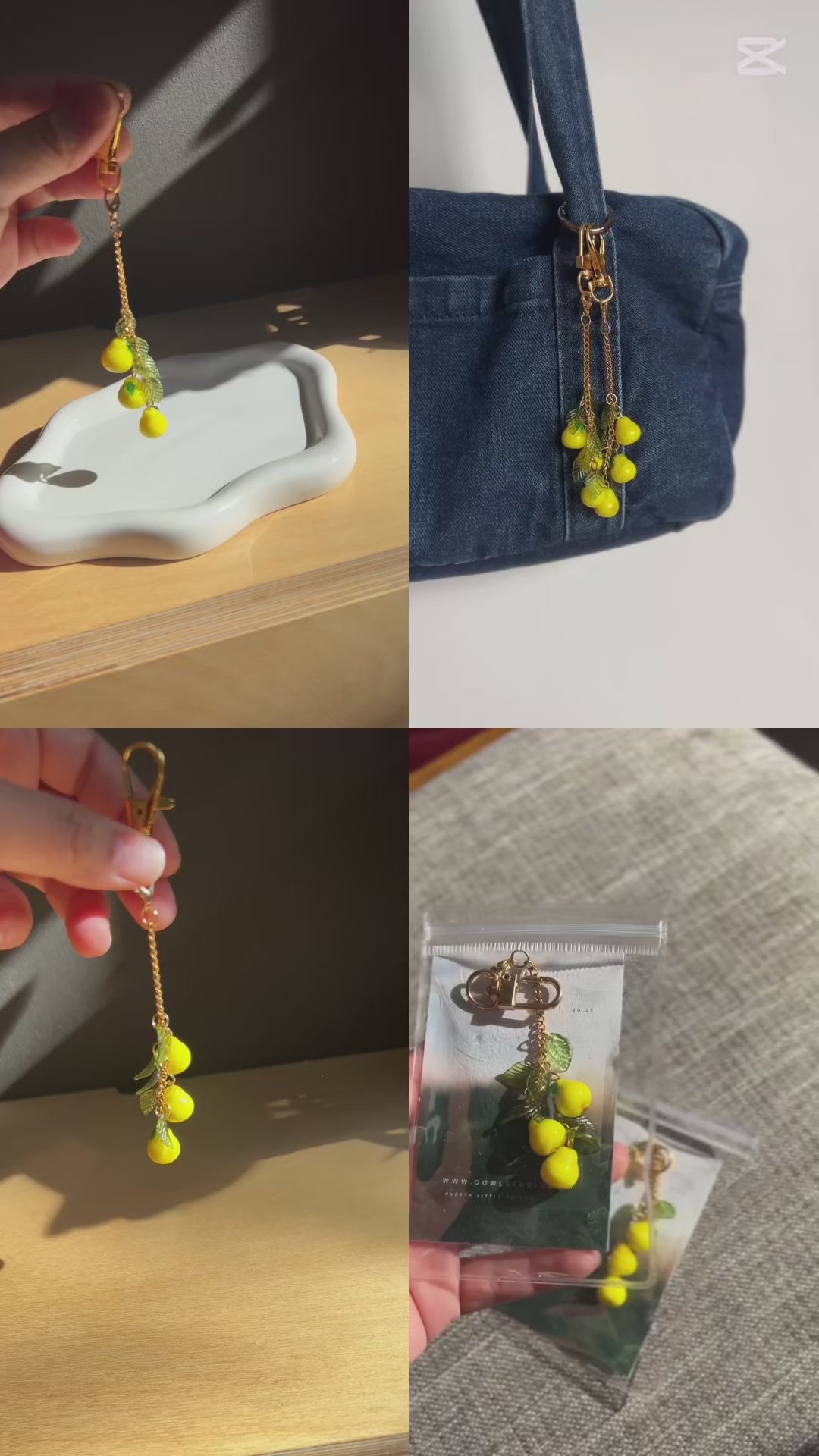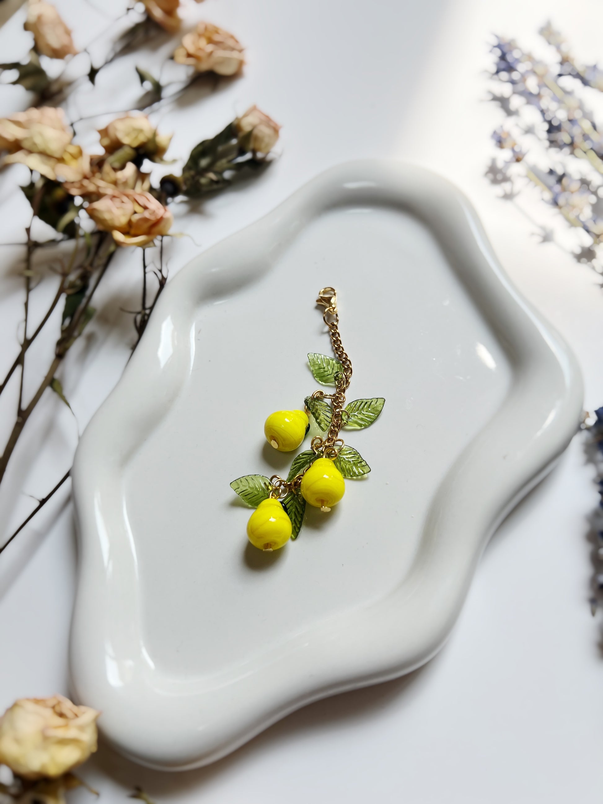Bright and delightfully little charm that makes a big statement ✨. Handcrafted with glossy yellow pears and dainty green leaves, this piece captures the beauty of nature in a chic, wearable form. The 18k gold plated stainless steel chain adds a perfect dose of sophistication. Clip it onto your favourite bag to add a touch of playful luxury and sunny charm to your everyday look.